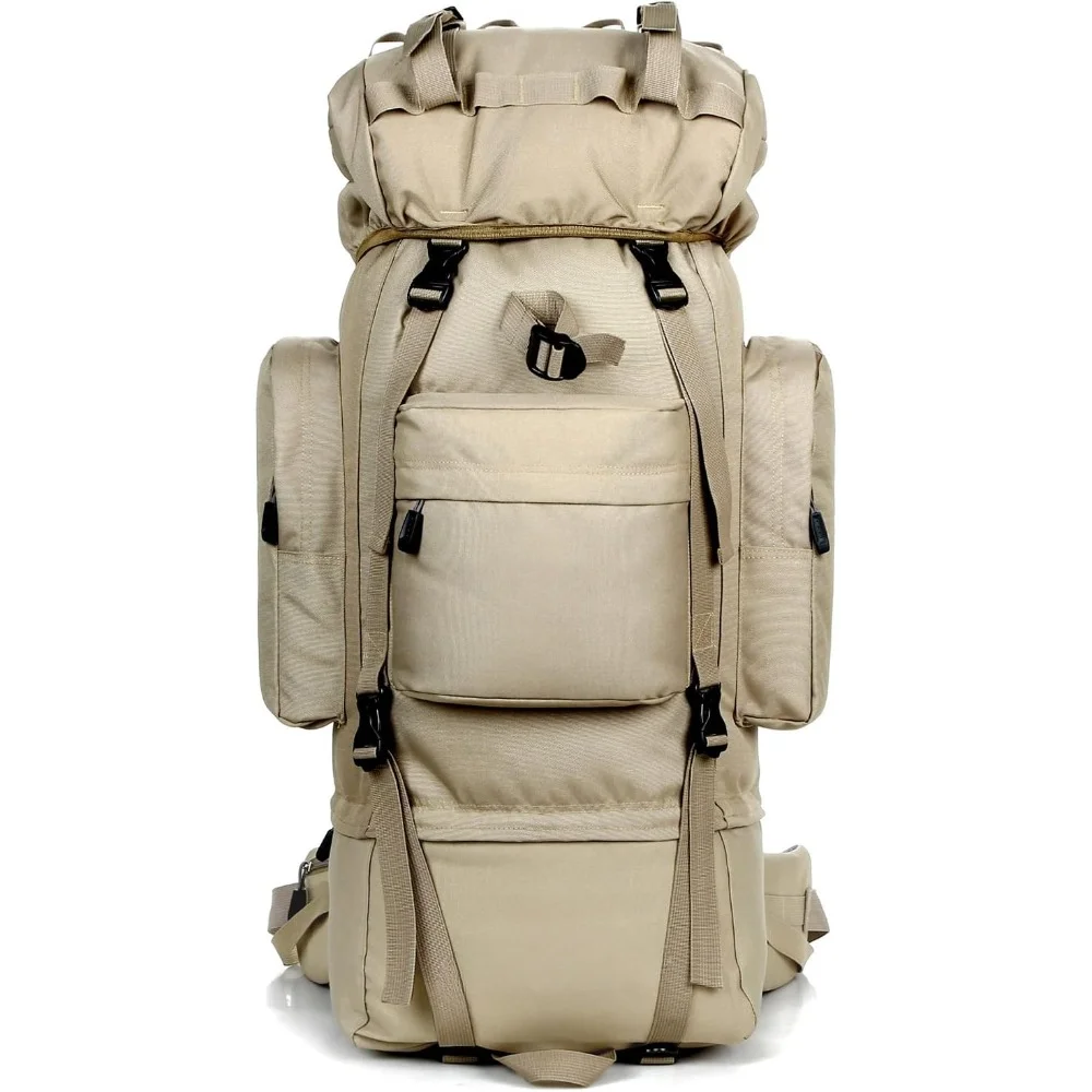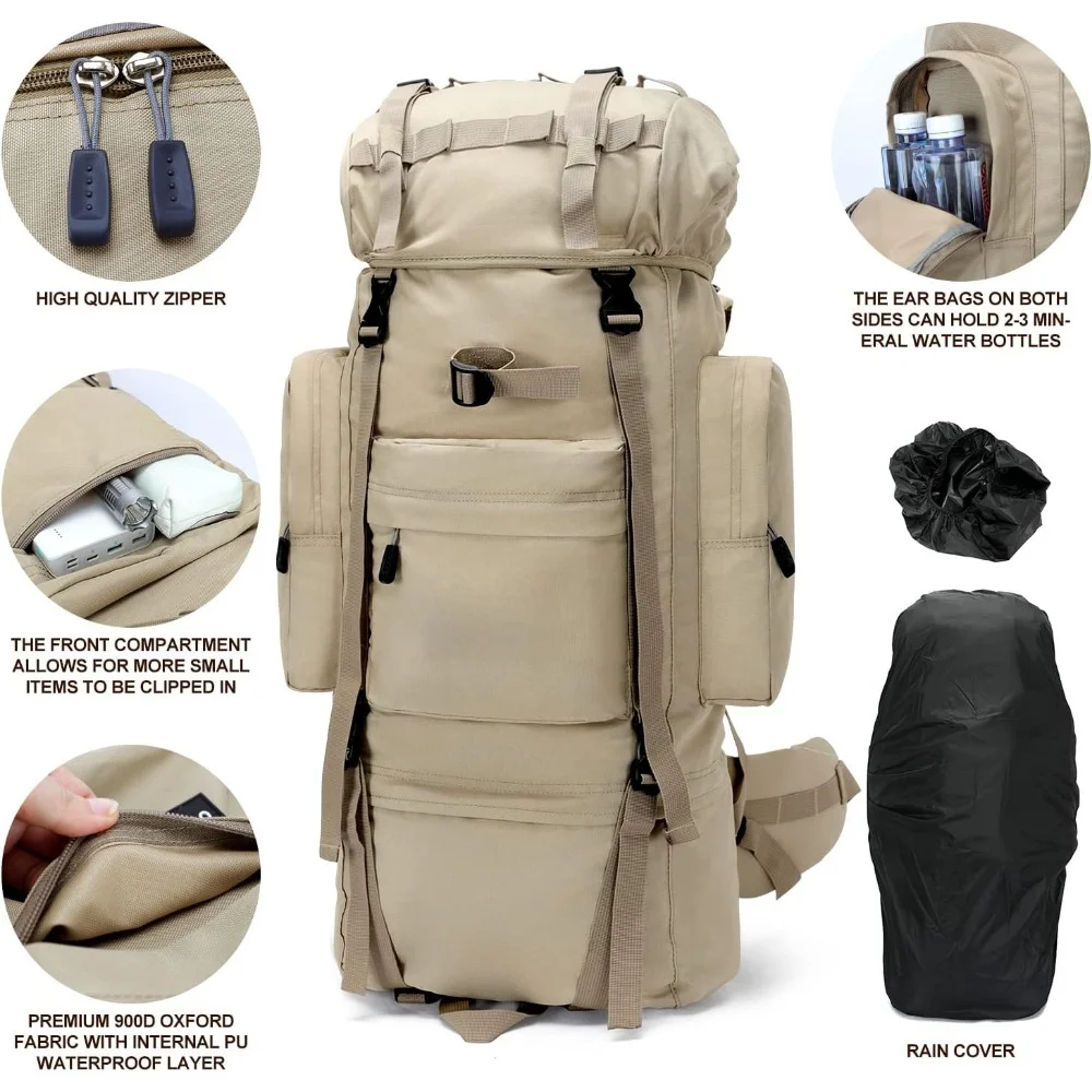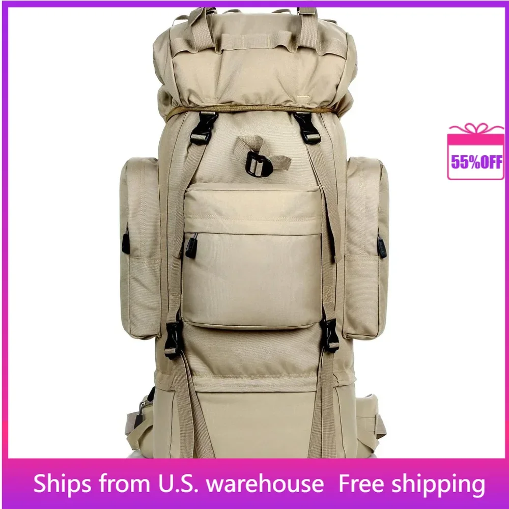 - 👣【LARGE CAPACITY】: Product Size: 29.1 x 11.4 x 7 inch. 85L large capacity internal frame backpack travel, lightweight 3.4 lbs. With multiple pockets and storage compartments, and the large main compartment for a 15.6 ” laptop, and the Bottom compartment has direct access to main compartment and easy access to items without opening the main compartment. In addition, various compression belts can additionally carry trekking poles, sleeping bags, tents and other camping equipment.