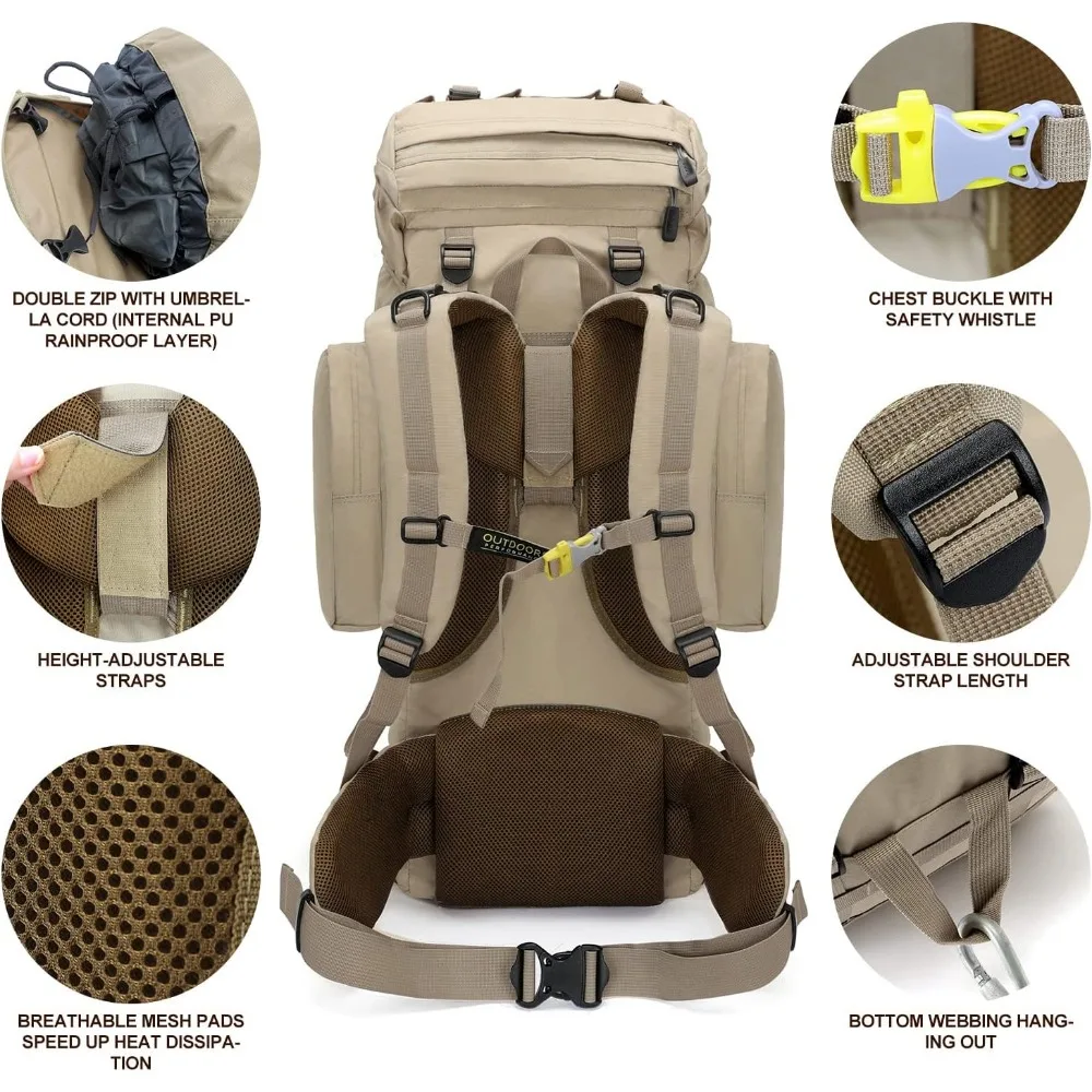 - 👣【COMFORTABLE AND BREATHABLE】: This lightweight & comfortable hiker backpack is specially designed for outdoor enthusiasts. The hiking bag is well constructed with breathable mesh padding and a ventilated back system, Breathable mesh shoulder straps with plentiful sponge padding help relieve the stress from your shoulder and ventilation, speed up heat dissipation. The ergonomically-designed structure gives you more comfortable experience. Perfect backpack for men, women and youth.