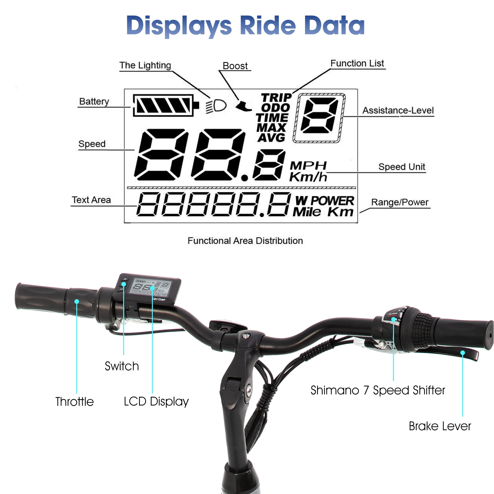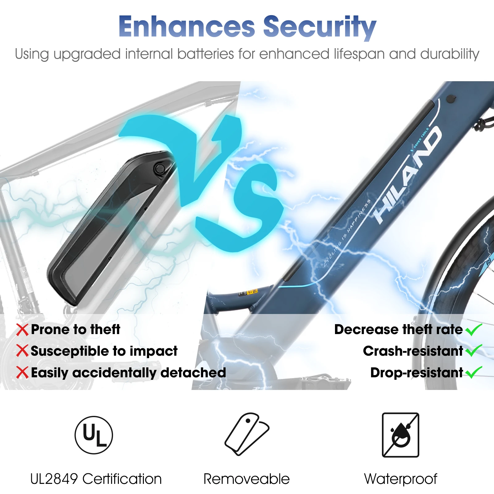 HILAND electric road bike, detachable lithium battery, commuting electric bike, Including shelves, 250W, with LCD display