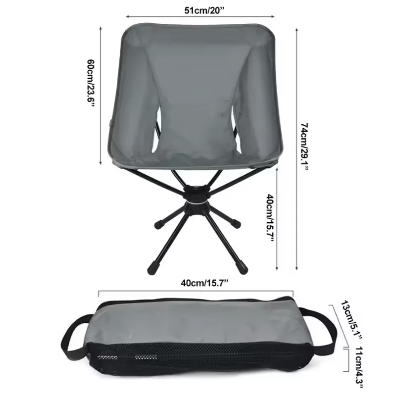 Swivel Detachable Chairs Camping Folding Chair Outdoor Backpacking Lightweight Seat with Carry Bag for Fishing Hiking